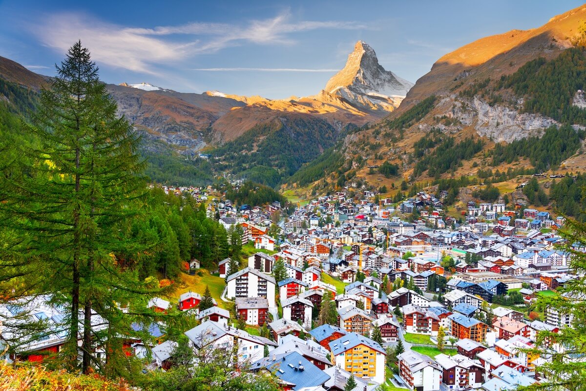 Zermatt, Switzerland with Town Under the Matterhorn